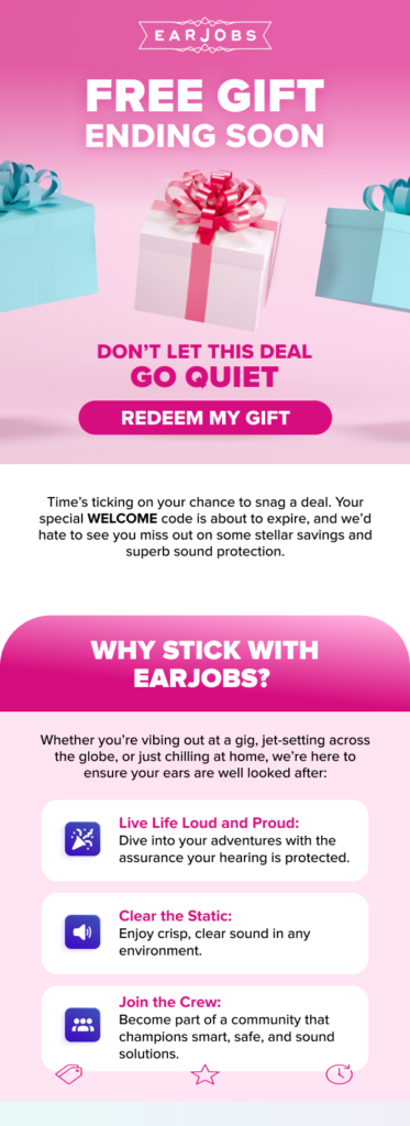 Earjobs had previously relied on irregular, generic campaigns that failed to connect with their audience. To create more meaningful engagement, we introduced highly targeted monthly campaigns crafted around key subscriber behaviours, purchase history, and seasonal trends. Each campaign was designed with a clear objective—whether it was driving repeat purchases, showcasing new products, or rewarding loyalty. By aligning content with the audience’s interests, we saw a consistent boost in engagement, open rates, and click-through rates.